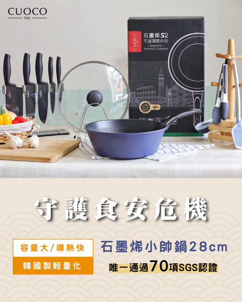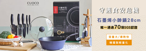 煮婦煮夫們必備的CUOCO石墨烯不沾鍋具,搭配最強的導熱材質石墨烯,替我們省瓦斯省時間。大容量可以煎、煮、炒、炸、滷、燉、煲都行超!萬!用!,實品真的超有質感,手感不錯,真的愈用愈喜歡,整組放在廚房質感都升級不少了。